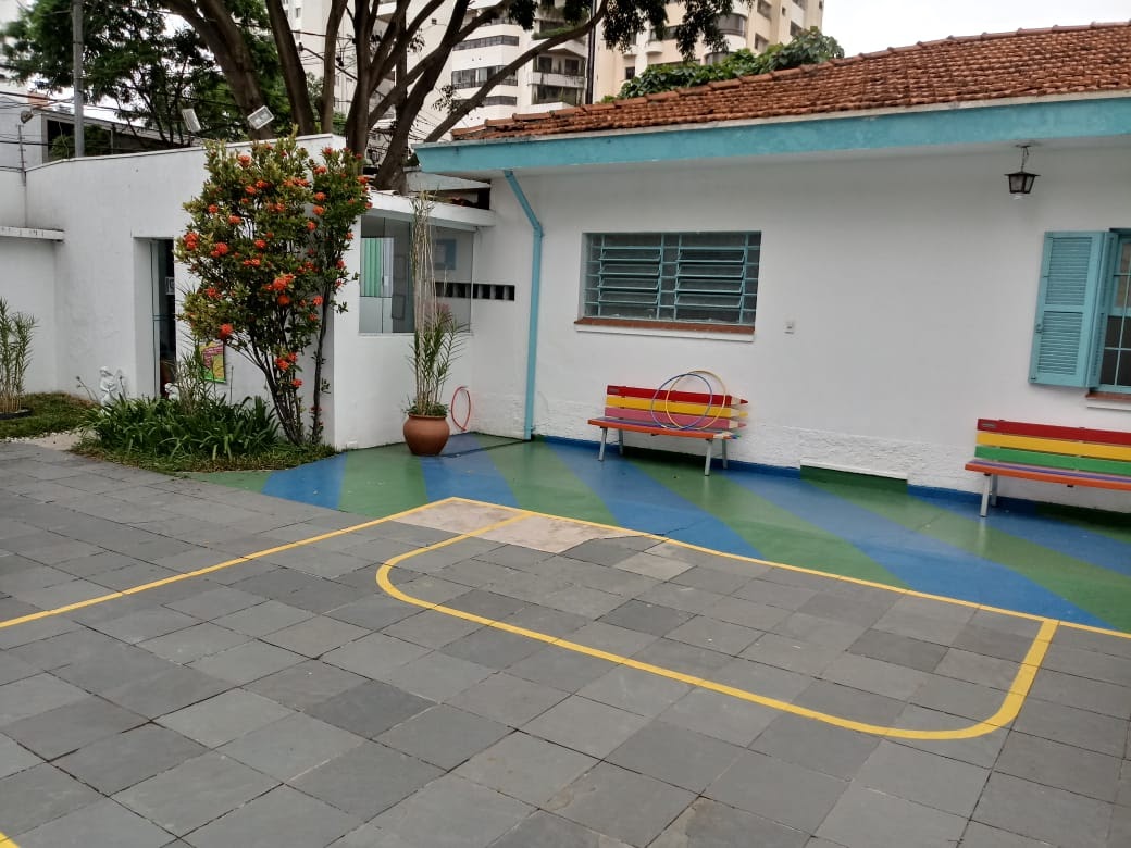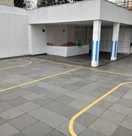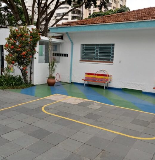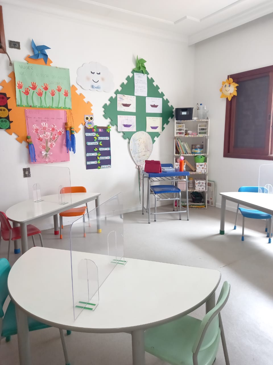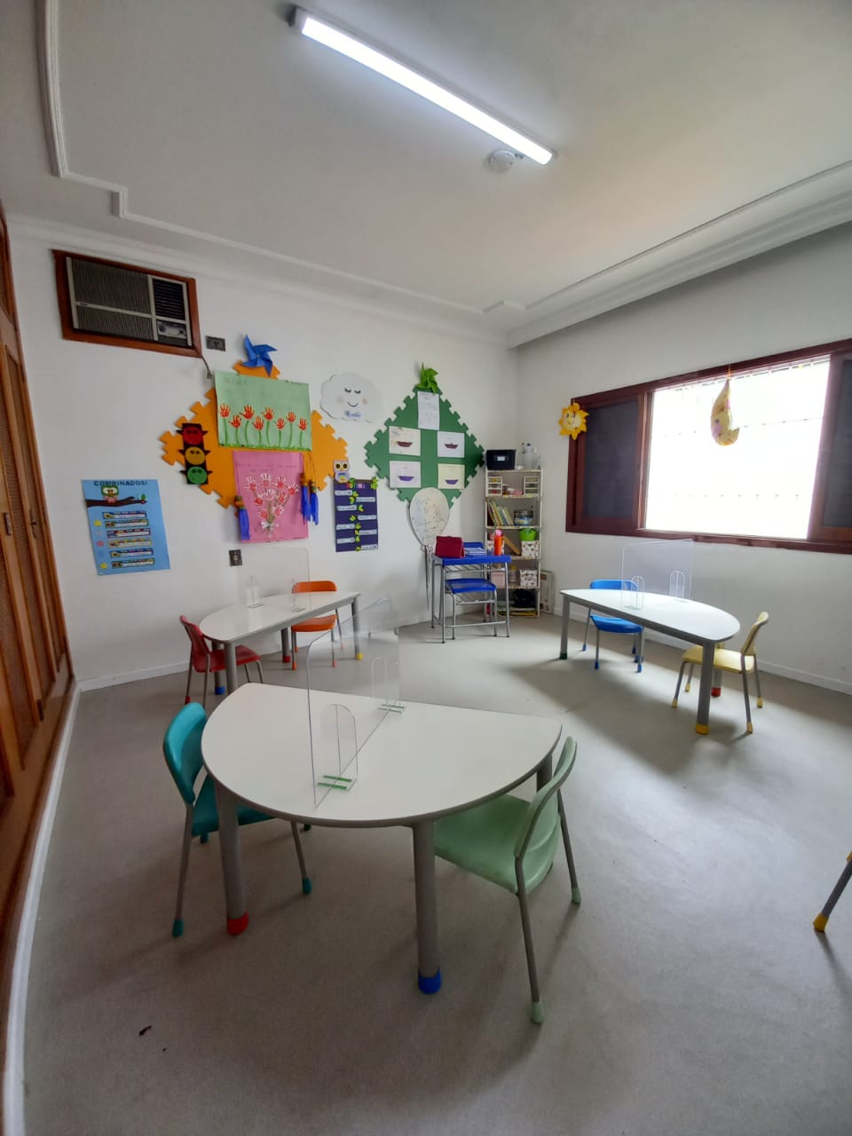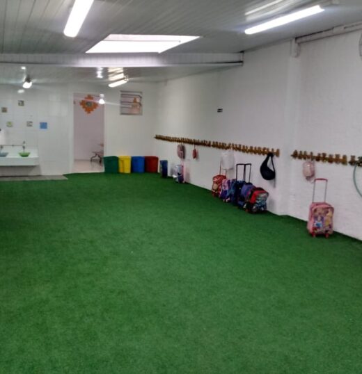 Gramado, Quadra, Parque, Refeitório, Mesas na área externa para realização de atividades fora da sala de aula e Recepção.